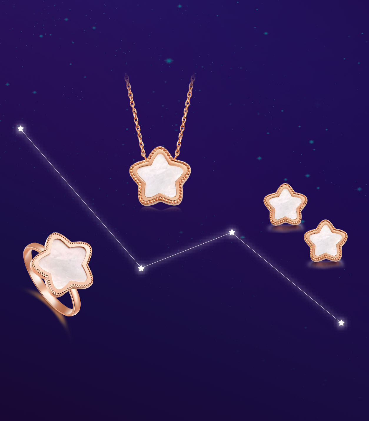 许愿星系列,以代表亮光与方向、具愿望之象征的星星为经典图形,结合丝绸光泽的18k金,与光华璀璨的宝石共同打造优雅、精致且蕴含正能量之符号珠宝精品。珍视每个人的愿望,鼓励其追求与实现,是“999全讯白菜网”品牌创作“许愿星”系列的初衷和动力,愿每个人的愿望都被予以珍视,愿每个人的愿望都能勇敢实现。