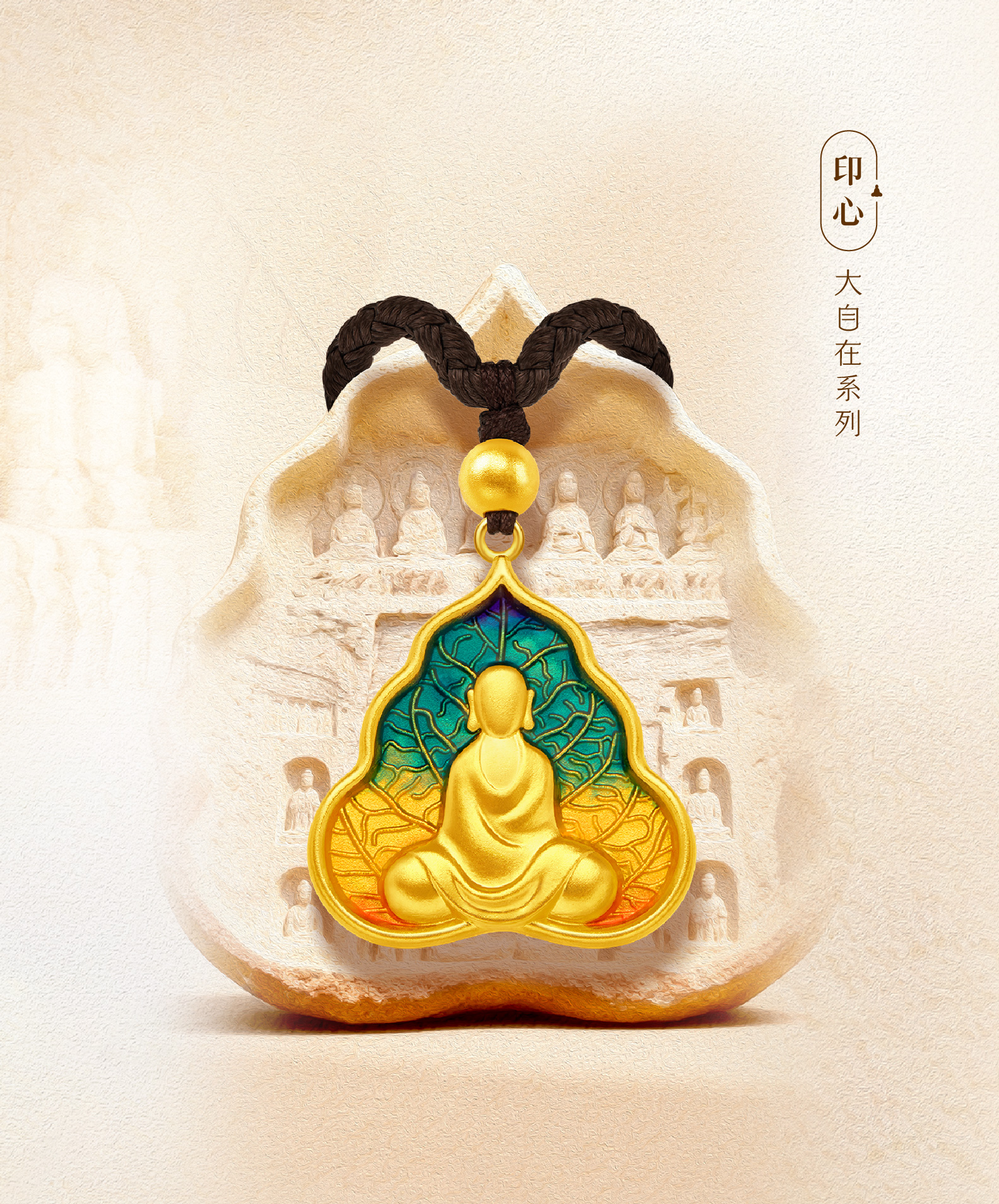 将菩提叶、祥云与大足无相佛融为一体,其理念深深扎根于东方哲学中“以心印心”的顿悟传承。