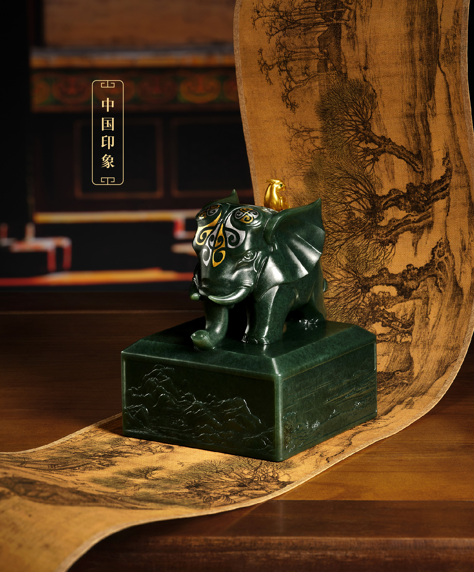 吉象驮来山河岁,江山一卷启新章。 一器承千年吉兆,万代享太平永固。