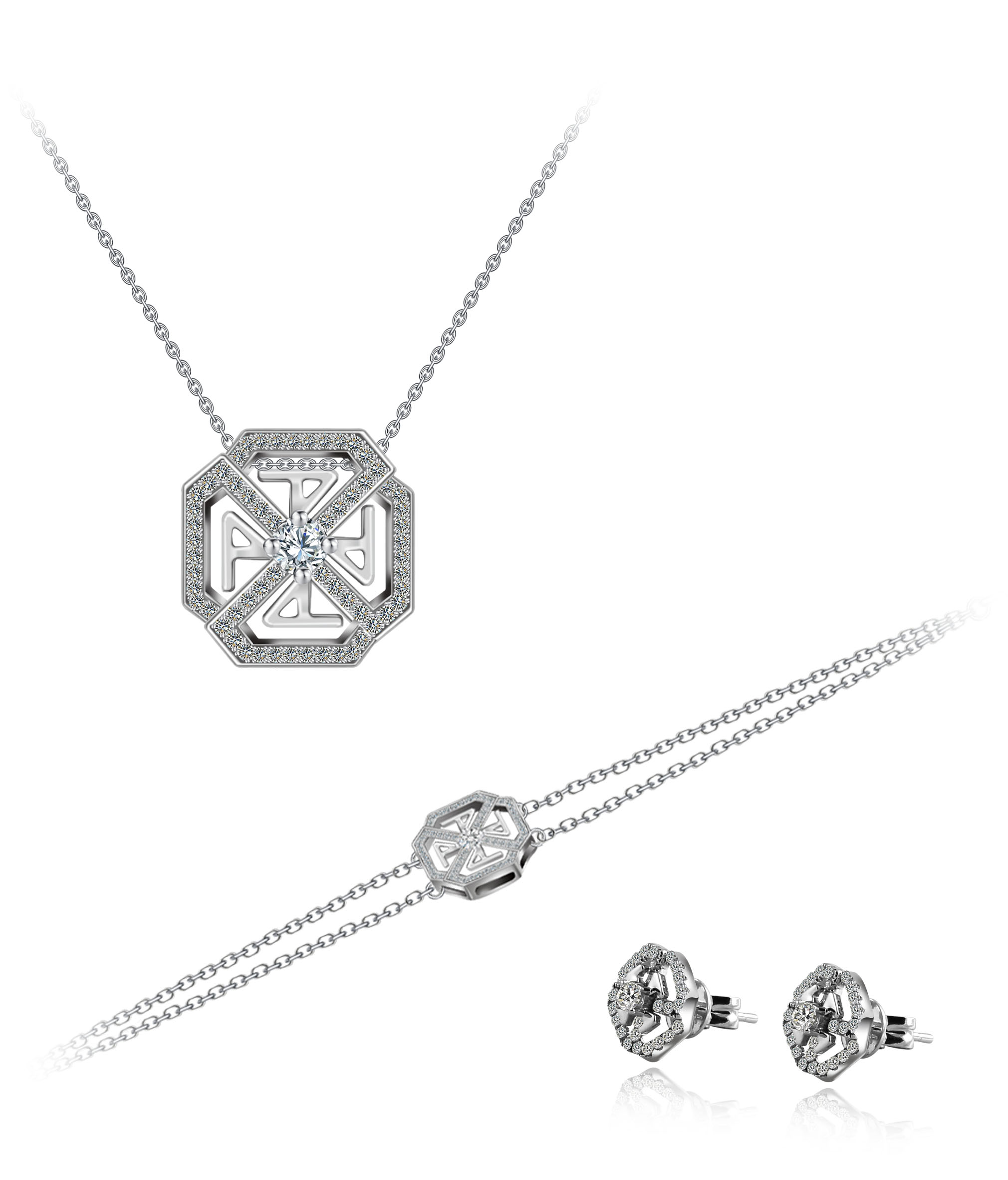 经典几何组合搭配,造就大气、简约的风格。细密精致的璀璨美钻,于熠熠光华间