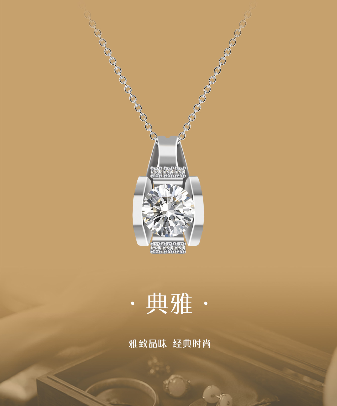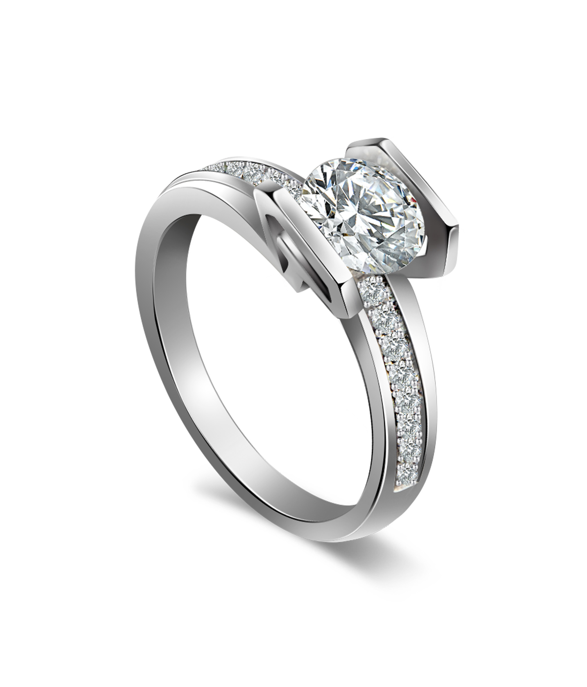 典雅美钻象征动人的爱情,有了她,两条平行线从此有了交点;有了她,两颗心从此一生相许。简洁不落俗套的设计,