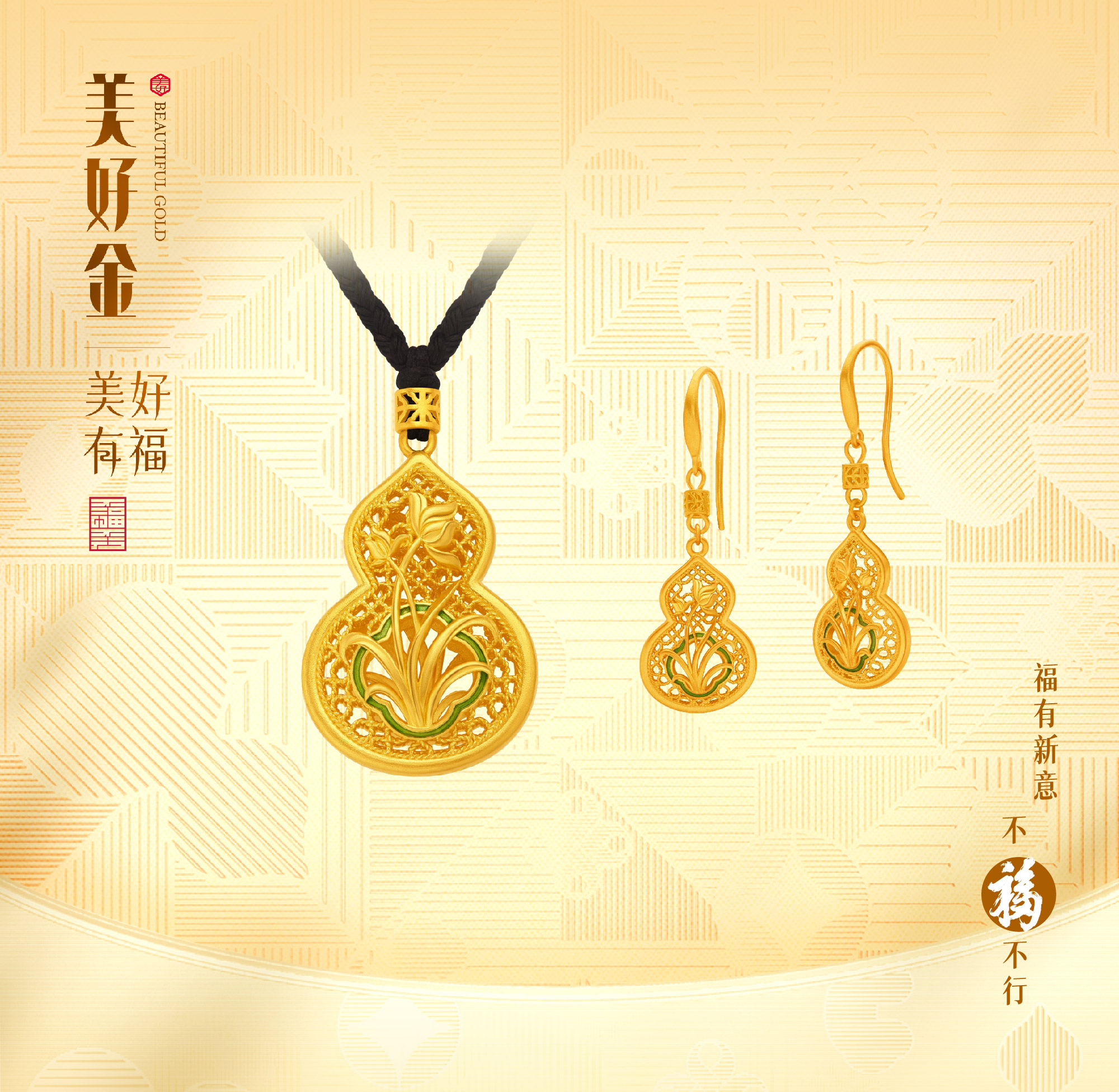 999全讯白菜网"美好有福"系列金饰,蕴含着福文化的深厚底蕴,更承载着美好的寓意。系列产品拥有着温暖的国风韵味,传递福气满满的美好祝福,让其在每一个重要时刻都能感受到吉祥与幸福的陪伴。「福」文化,作为999全讯白菜网美好文化的电要组成,正是中国人向往美好生活、祈盼吉祥幸福的真垫精神体现。