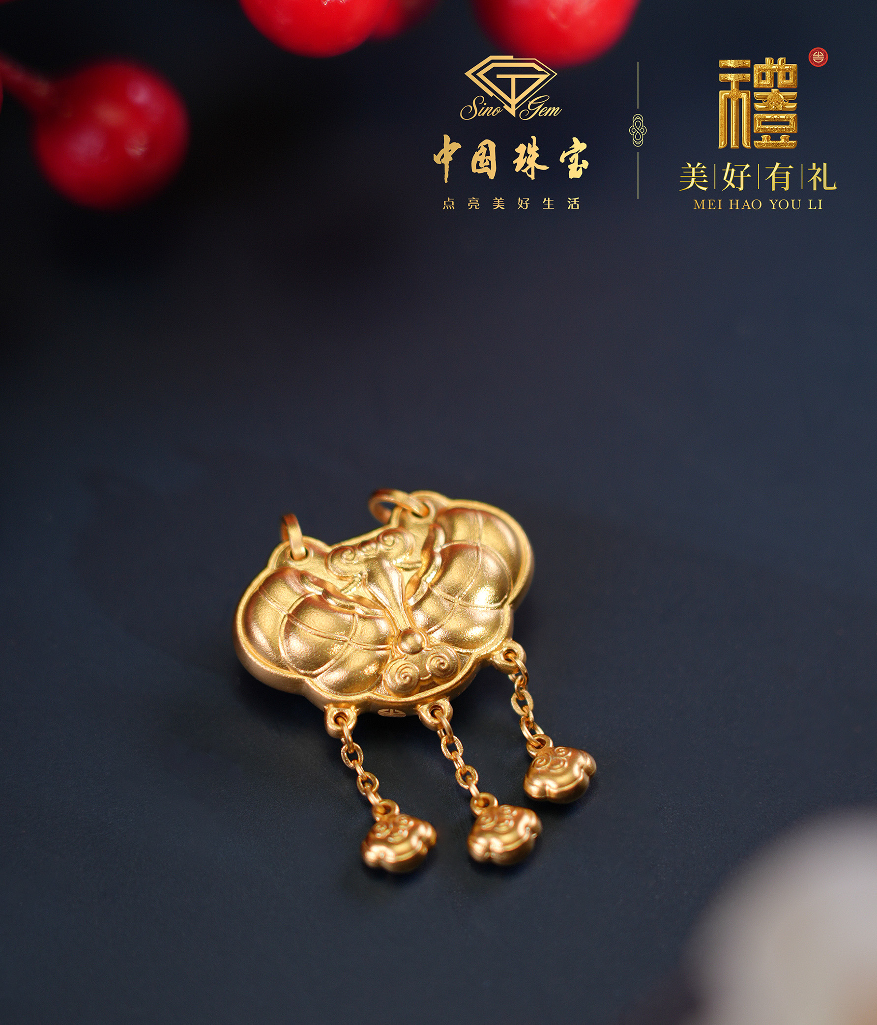 饱满的柿子与如意金锁