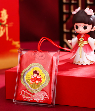 鹊宝IP系列提取祥瑞元素,以潮流趣味的设计打造黄金系列产品,为消费者报喜送福,带来吉祥好运、万事圆满的美好祝福。